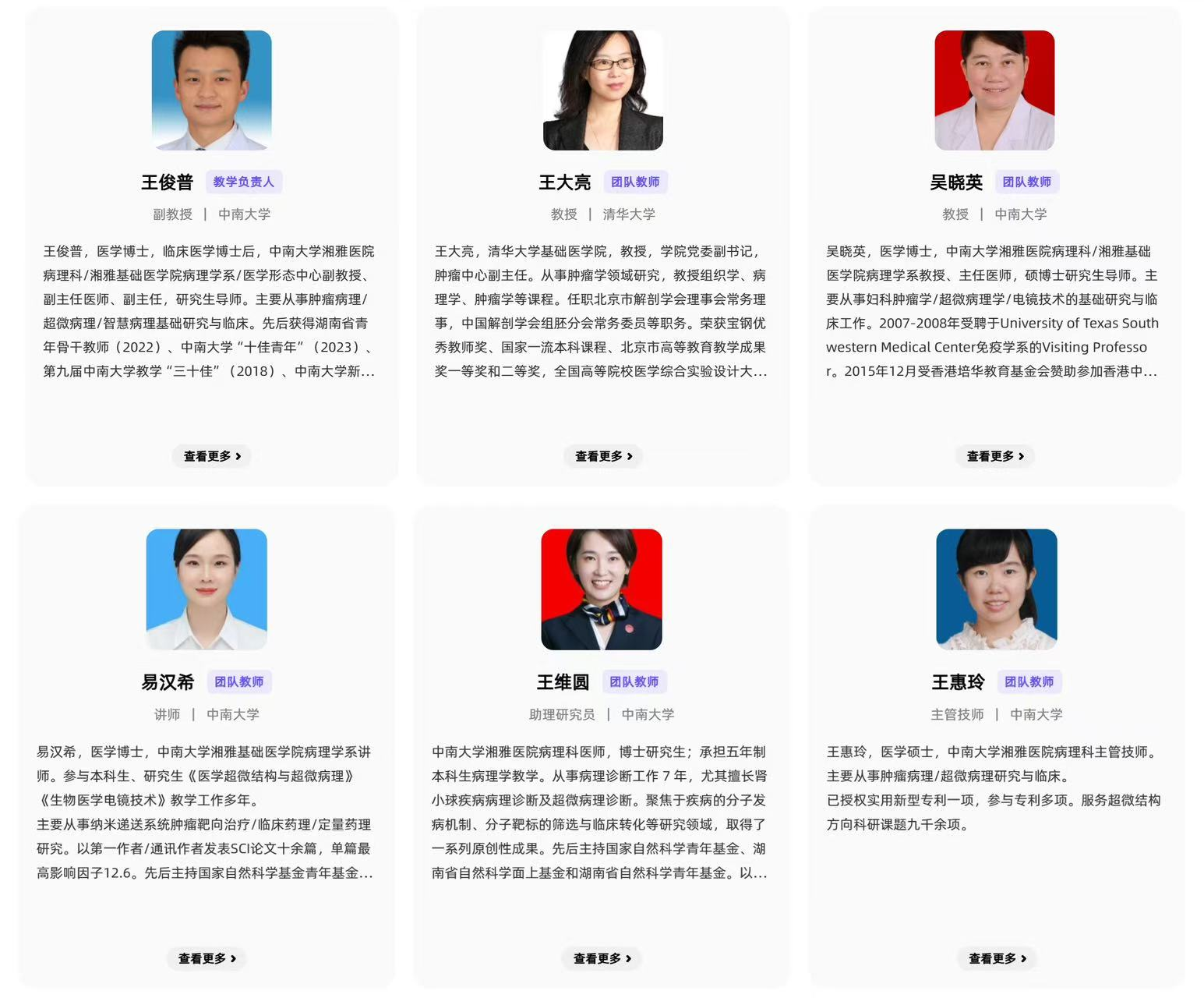 《医学超微结构与超微病理》课程在公司、医院和病理学系的指导下,由王俊普副教授牵头,联合吴晓英教授、易汉希讲师等教研室核心成员,以及湘雅三所附属医院的相关老师和临床一线医生共同组成强大的课程团队;同时,课程建设还得到了清华大学王大亮教授、中山大学肿瘤防治中心、湖南师范大学、南华大学、湖南省人民医院等多家高校与医疗机构同行的大力支持。