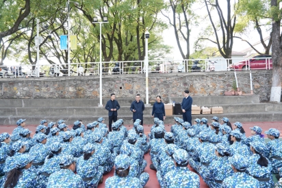 2025年10月23日,球王会体育官网公司党委书记王慷慨、党委副书记冯虹一行来到麓南校区篮球场,亲切慰问了带训教官、2025级本科新生,为他们送上温暖关怀,学工办相关辅导员及员工干部代表参加。