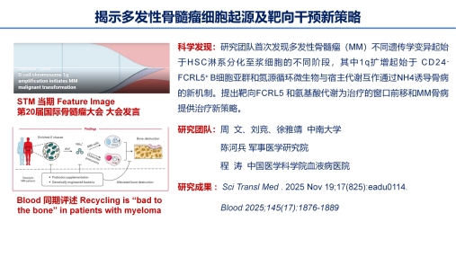 2026年1月11日,第六届中国血液学科发展大会揭晓了“2025年度中国血液学十大研究进展”,球王会肿瘤研究所周文教授团队成果“揭示多发性骨髓瘤细胞起源及靶向干预新策略”入选。
